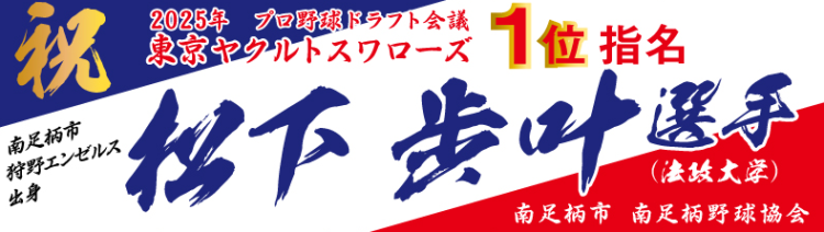 2025年プロ野球ドラフト会議にて、南足柄市出身で狩野エンゼルスに所属していた